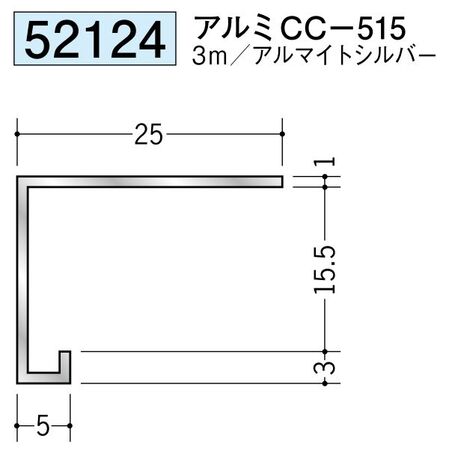 アルミ製コ型見切縁 アルミCC-515 アルマイトシルバ- 長さ3m