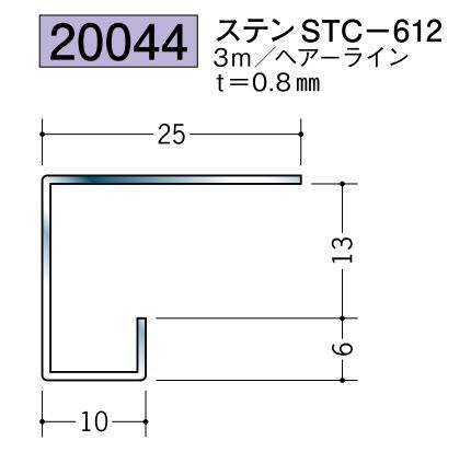 ステンレス製コ型見切縁 ステンSTC-612 ヘアーライン 長さ3m