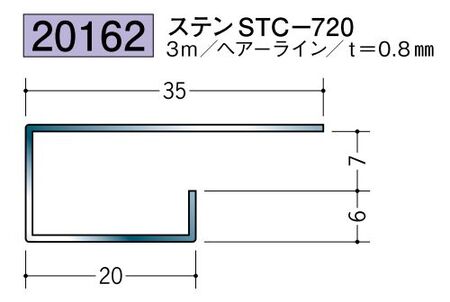 ステンレス製コ型見切縁 ステンSTC-720 ヘアーライン 長さ3m