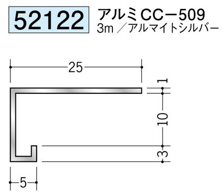 アルミ製コ型見切縁 アルミCC-509 アルマイトシルバ- 長さ3m