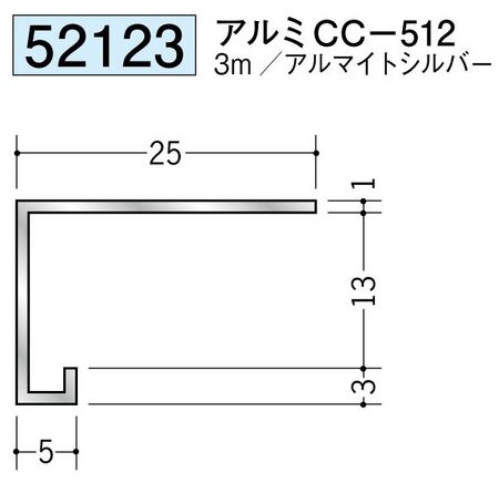 アルミ製コ型見切縁 アルミCC-512 アルマイトシルバ- 長さ3m