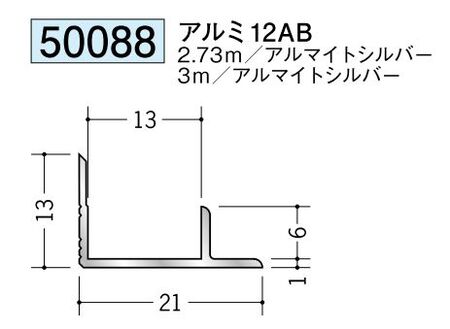 アルミ製入隅ジョイナー アルミ12AB アルマイトシルバー 長さ2.73m/3m