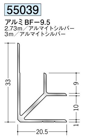 アルミ製入隅ジョイナー アルミBF-9.5 アルマイトシルバー 長さ2.73m/3m