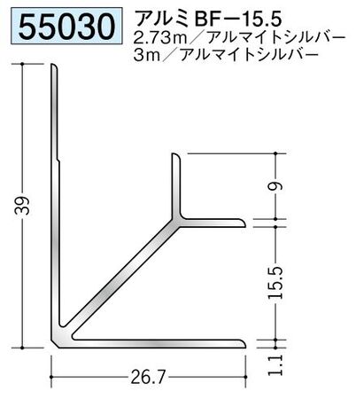 アルミ製入隅ジョイナー アルミBF-15.5 アルマイトシルバー 長さ2.73m/3m