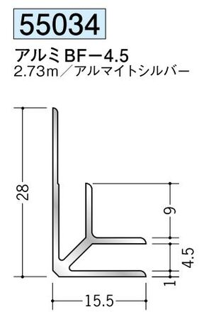アルミ製入隅ジョイナー アルミBF-5.5 アルマイトシルバー 長さ2.73m