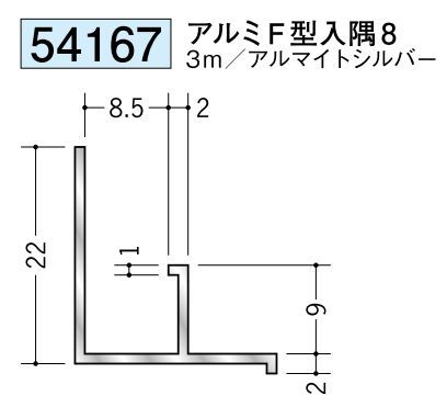 アルミ製入隅ジョイナー アルミF型入隅8 アルマイトシルバー 長さ3m