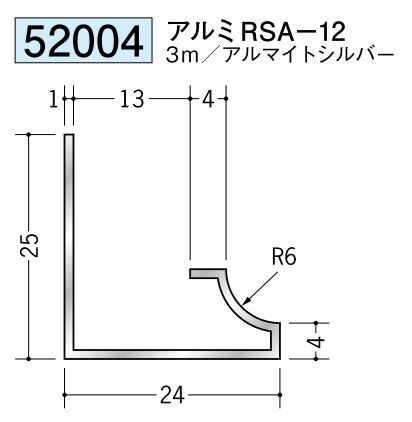 アルミ製入隅ジョイナー アルミRSA-12 アルマイトシルバー 長さ3m