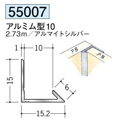 アルミ製入隅ジョイナー アルミム型10 アルマイトシルバー 長さ2.73m創建