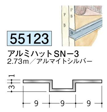 アルミ製ハット型ジョイナー アルミハットSN-3 アルマイトシルバー 長さ2.73m