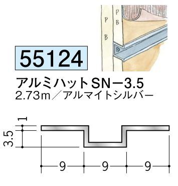 アルミ製ハット型ジョイナー アルミハットSN-3.5 アルマイトシルバー 長さ2.73m創建