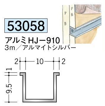 アルミ製ハット型ジョイナー アルミHJ-910 アルマイトシルバー 長さ3m創建