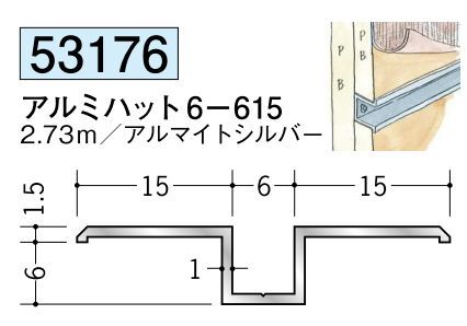 アルミ製ハット型ジョイナー アルミハット6-615 アルマイトシルバー 長さ2.73m創建