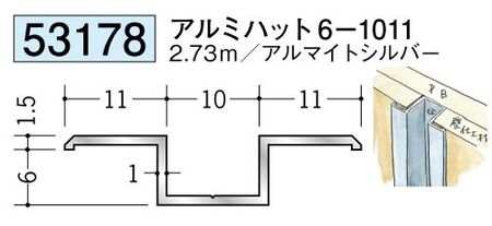 アルミ製ハット型ジョイナー アルミハット6-1011 アルマイトシルバー 長さ2.73m