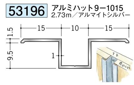 アルミ製ハット型ジョイナー アルミハット9-1015 アルマイトシルバー 長さ2.73m創建