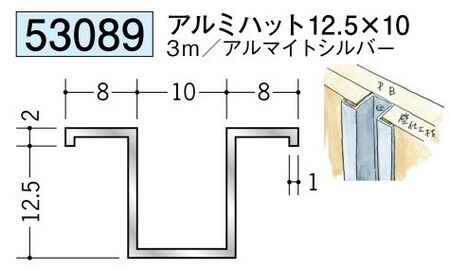 アルミ製ハット型ジョイナー アルミハット12.5×10 アルマイトシルバー 長さ3m