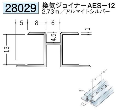 アルミ製ハット型ジョイナー 換気ジョイナーAES-12 アルマイトシルバー 長さ2.73m創建