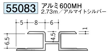 アルミ製ハット型ジョイナー アルミ600MH アルマイトシルバー 長さ2.73m