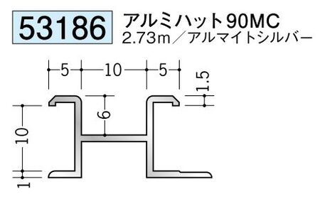 アルミ製ハット型ジョイナー アルミハット90MC アルマイトシルバー 長さ2.73m