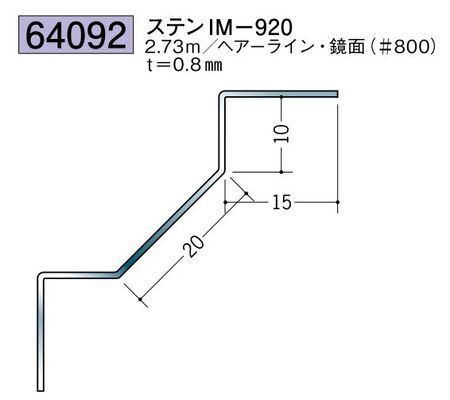 ステンレス製入隅ジョイナー ステンIM-920 ヘアーライン/鏡面(#800) 長さ2.73m価格: 10,260円 (税別) 〜