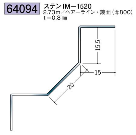 ステンレス製入隅ジョイナー ステンIM-1520 ヘアーライン/鏡面(#800) 長さ2.73m価格: 11,210円 (税別) 〜