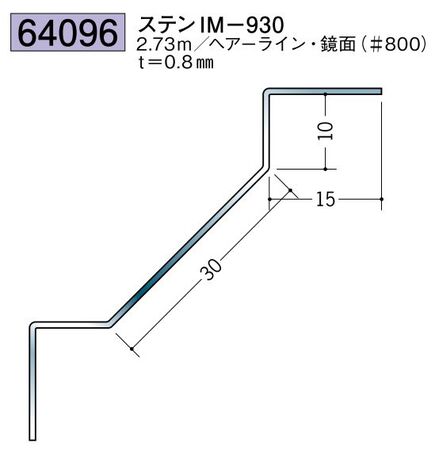 ステンレス製入隅ジョイナー ステンIM-930 ヘアーライン/鏡面(#800) 長さ2.73m価格: 11,080円 (税別) 〜