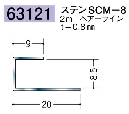 ステンレス製コ型ジョイナー ステンSCM-8 ヘアーライン 長さ2m創建
