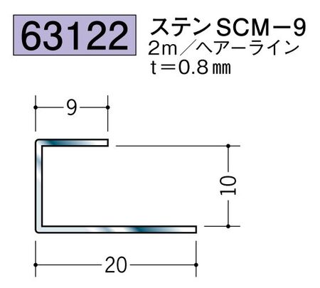 ステンレス製コ型ジョイナー ステンSCM-9 ヘアーライン 長さ2m創建