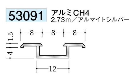 アルミ製ハット型ジョイナー アルミCH4 アルマイトシルバー 長さ2.73m