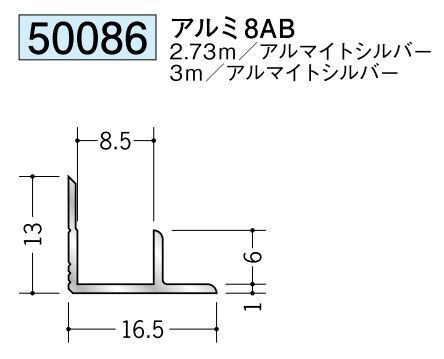 アルミ製入隅ジョイナー アルミ8AB アルマイトシルバー 長さ2.73m/3m