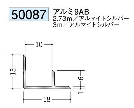アルミ製入隅ジョイナー アルミ9AB アルマイトシルバー 長さ2.73m/3m