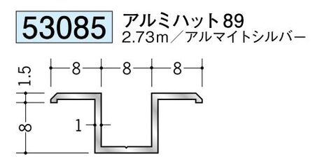 アルミ製ハット型ジョイナー アルミハット89 アルマイトシルバー 長さ2.73m