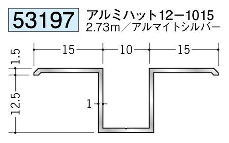 アルミ製ハット型ジョイナー アルミハット12-1015 アルマイトシルバー 長さ2.73m創建