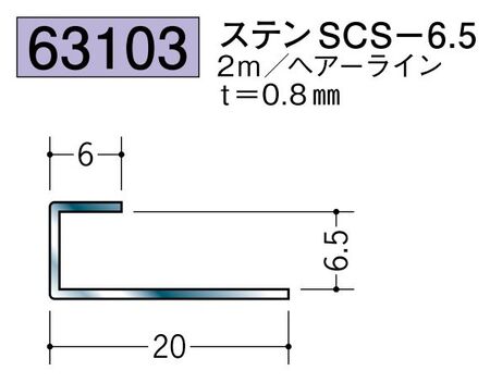 ステンレス製コ型ジョイナー ステンSCS-6.5 ヘアーライン 長さ2m創建