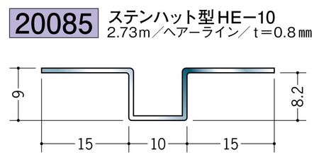 ステンレス製ハット型ジョイナー ステンハット型HE-10 ヘアーライン 長さ2.73m創建
