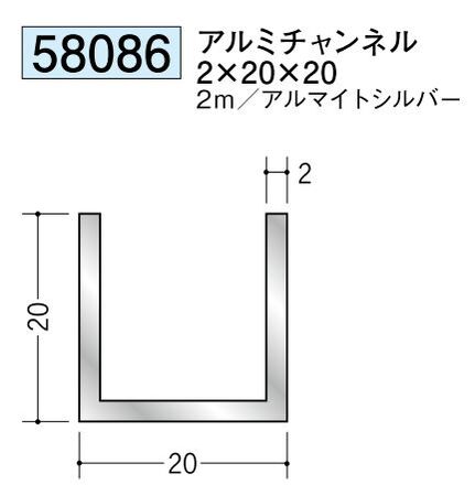 アルミ製チャンネル アルミチャンネル 2×20×20 アルマイトシルバー 長さ2m創建