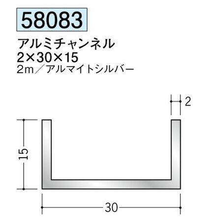 アルミ製チャンネル アルミチャンネル 2×30×15 アルマイトシルバー 長さ2m創建