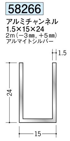 アルミ製チャンネル アルミチャンネル 1.5×15×24 アルマイトシルバー 長さ2m創建