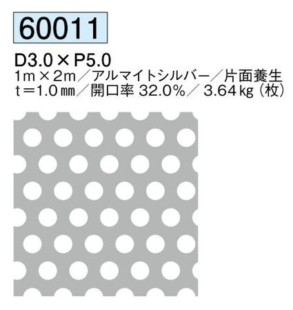 アルミ製パンチングメタル D3.0×P5.0 アルマイトシルバー サイズ:1m×2m