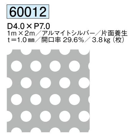 アルミ製パンチングメタル D4.0×P7.0 アルマイトシルバー サイズ:1m×2m