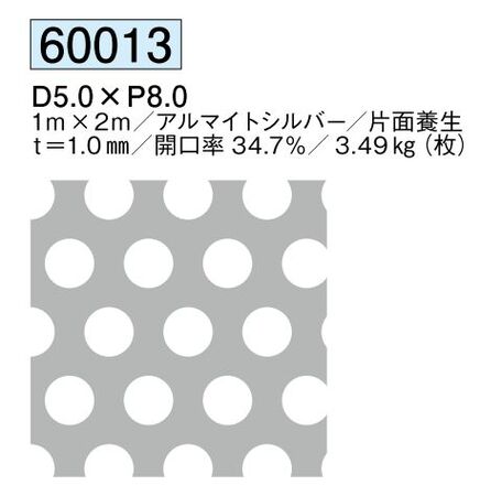 アルミ製パンチングメタル D5.0×P8.0 アルマイトシルバー サイズ:1m×2m