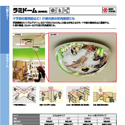 浮遊感覚のシンプルデザイン。360°どの方向からも人の動きが見えるので、十字路の衝突防止に最適です。什器や書棚、ロッカーなどの間の死角解消にも。