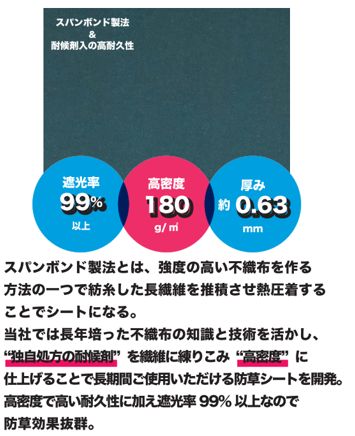 SGV防草シート180 巾1m×長さ50m/巾2m×50m×厚み約0.63mm