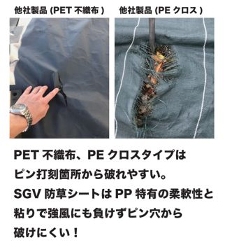 高い保持力:PP特有の柔軟性により粘りで強風にも負けずピン穴から破れにくい
