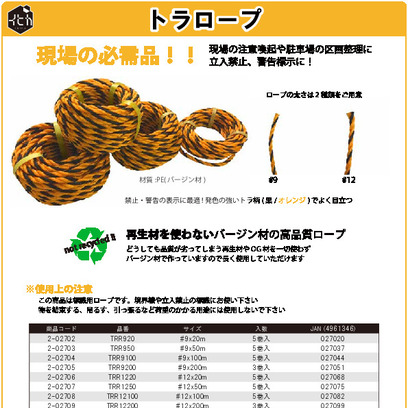 この商品は標識用ロープです。境界線や立入禁止の標識にお使い下さい