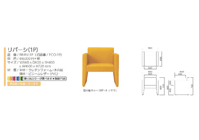 omoio(水上) リバーシ(1P) 張地選択 BR-RV-1P (旧品番:FCO-1P) W600×D600×SH400×AH600×H720mm(納期約3~4週間)