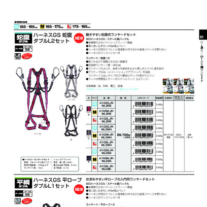 動きやすい蛇腹式ランヤードセット SEGハーネスGS/スチール製バックル