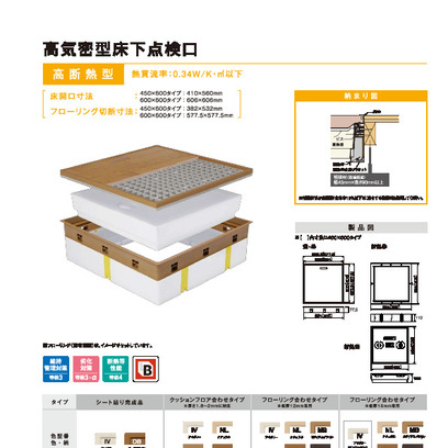 ●点検口蓋にはシートを貼った完成品、現場でクッションフロアを合わせるタイプ、