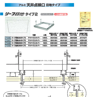 開口寸法サイズ(mm):(303タイプ2)303×303・(454タイプ2)454×454・(606タイプ2)606×606・(306タイプ2)303×606・(3045タイプ2)303×454