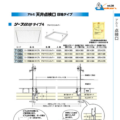開口寸法サイズ(mm):(303タイプ4)303×303・(454タイプ4)454×454・(606タイプ4)606×606・(306タイプ4)303×606