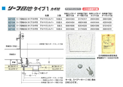 創建 アルミ 天井点検口(目地タイプ) リーフ目地 タイプ1(アルマイトシルバー) カギ付 吊り金具タイプ 創建